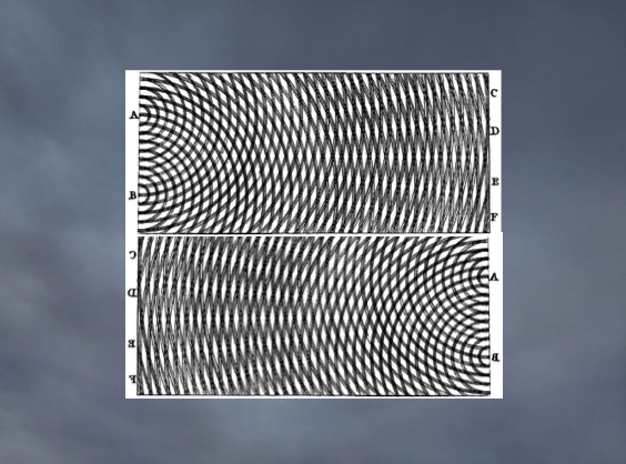 From his observations on the effects of light passing through a pinhole into a darkened room, Grimaldi conceptualised light in a different way, as fluid-like rather than corpuscular. He observed that as light encounters objects it breaks up and moves outwards in different directions, and he called this diffraction. In what was possibly the earliest laboratory produced two-slit experiment to map diffraction patterns, Grimaldi’s notes reveal his observations of this remarkable feature of light: